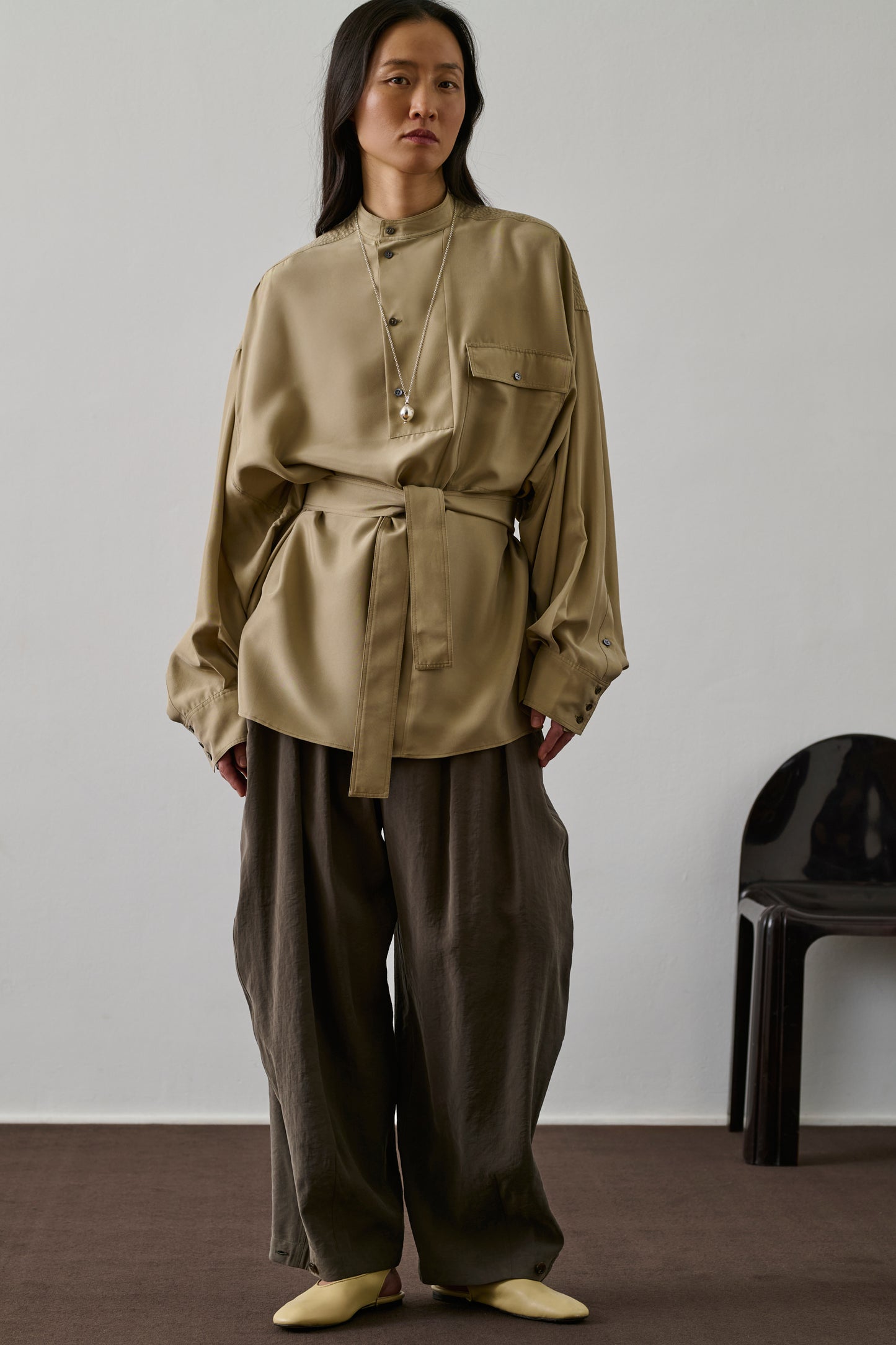 - Buttoned mandarin collar