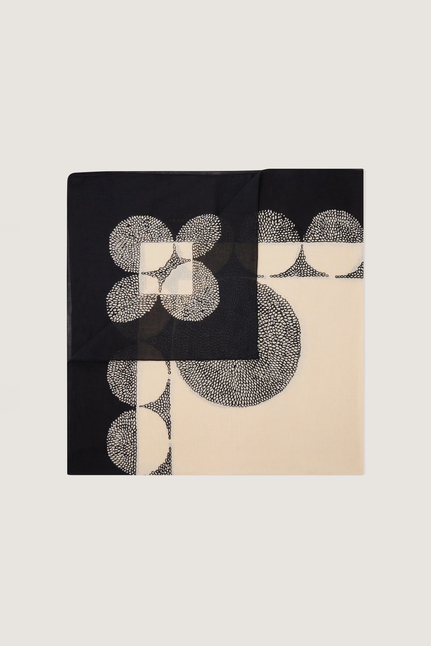 SKY is a large cotton voile shawl. Sporting a graphic "Stencil" pattern, this lightweight scarf is perfect for the mid-season. Thanks to its generous size, it can also be tied around the waist as a sarong.